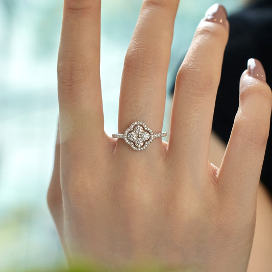 [CharmAmor]Hollow Design Four-Leaf Clover Flower Shape Ring