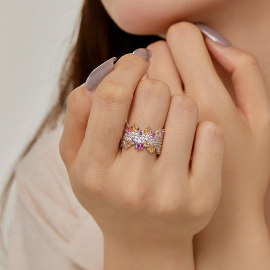 [CharmAmor]Ornate Colorful Radiant Cut Daily Ring